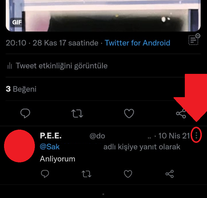 - Twitter uygulamanızı başlatın ve yanıtını gizlediğiniz gönderiye gelin. Gönderinizin yanında bulunan üç noktaya tıklayın.