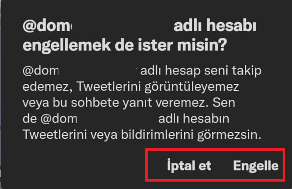 - Karşınıza yanıtını gizlemek istediğiniz kullanıcıyı engellemek isteyip istemediğiniz sorusu gelecektir. Engellemek istiyorsanız “Engelle”, istemiyorsanız “İptal et” seçeneğine dokunun.