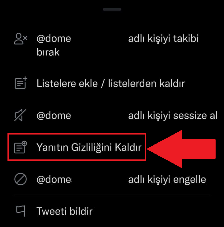 - Açılan pencerede “Yanıtın Gizliliğini Kaldır” seçeneğine dokunun.