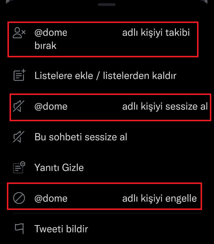 Sizleri cevaplarıyla bıktıran ve sosyal medyaya girmek istememenize neden olan kullanıcıları, isterseniz bir daha görmezsiniz. Peki, bu nasıl yapılır? Yapmanız gereken tek şey size attıkları cevabın yanında bulunan üç noktaya dokunmak ve yapmak istediğiniz eylemi seçmek. Bu alanda isterseniz kullanıcıyı susturabilir, onu takip etmeyi bırakabilir ve engelleyebilirsiniz. Daha sonra isterseniz bütün yaptığınız bu eylemleri geri alabilir ve eski haline dönüştürebilirsiniz. Siz de cevapları ile sizleri sosyal medyaya küstüren kullanıcılara cevap verin ve profilinizden uzak tutun.