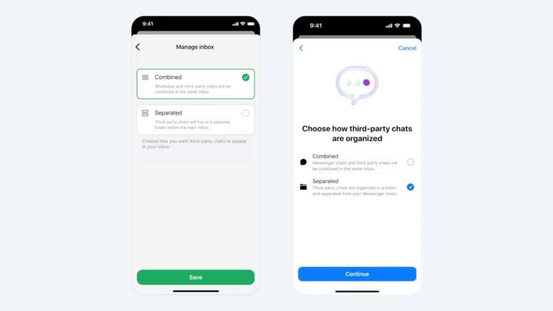 Meta, bu yeni özellikleri oluştururken potansiyel iş ortaklarından ve paydaşlardan geri bildirim aldığını belirtti. WhatsApp ve Messenger'da, kullanıcıları üçüncü taraf bir mesajlaşma hizmetiyle entegrasyon mümkün olduğunda bilgilendirecek yeni bildirimler tasarlandı. Kullanıcılar, hangi üçüncü taraf uygulamalardan mesaj almak istediklerini seçebilecek ve bu mesajları ister ayrı bir gelen kutusunda, ister mevcut sohbetlerle birlikte görebilecekler.