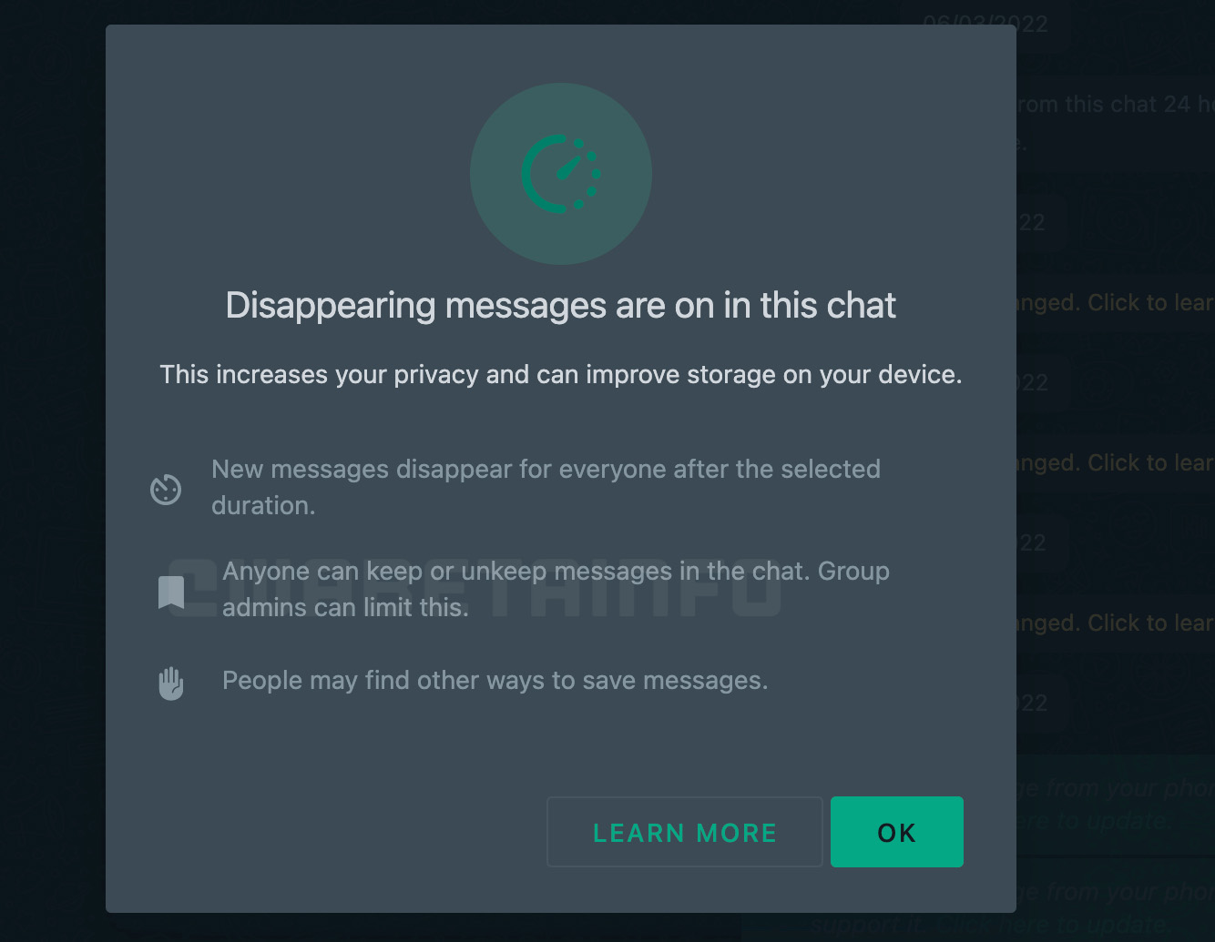 WABetaInfo'nun ortaya çıkardığı özellik uygulamanın 22.14.0.70 kodlu iOS beta sürümünde görüldü. Bu özelliğe göre, ilginç bir şekidle kaybolan mesajları saklama imkanı sunulacak. WhatsApp'ın kaybolan mesaj özelliği, kullanıcılara bir süre sonra yok olan mesajlar göndermesini sağlıyordu. Geliştirme aşamasındaki yeni özellik ise kaybolan mesajlar modunun açıldığı sohbetlerdeki mesajları saklamaya yarayacak. Kullanıcılar, bu yeni özelliği açtıklarında kaybolan mesajların silinmemesini sağlayabilecekler.