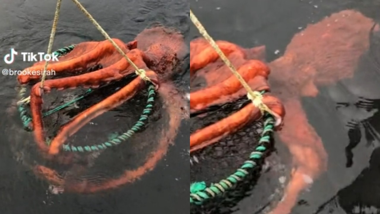 Vancouver Adası'ndan Brooke Sattar, geçenlerde bazı arkadaşlarıyla Alberni Körfezi'nde balık avlarken, karides tuzağının normalden biraz daha ağır olduğunu fark etti. Doğal olarak, Sattar başlangıçta bunun tuzağın işini yaptığı ve karideslerle dolu olduğu anlamına geldiğini varsaydı, ancak onu sudan çıkardığında çok geçmeden aslında devasa bir ahtapotun tuzağın üstünde olduğunu gördü. Kuzey Pasifik dev ahtapotu olduğu düşünülen bu ahtapot, Nature Conservancy of Canada'ya göre en büyük, en uzun ömürlü ahtapot türü.