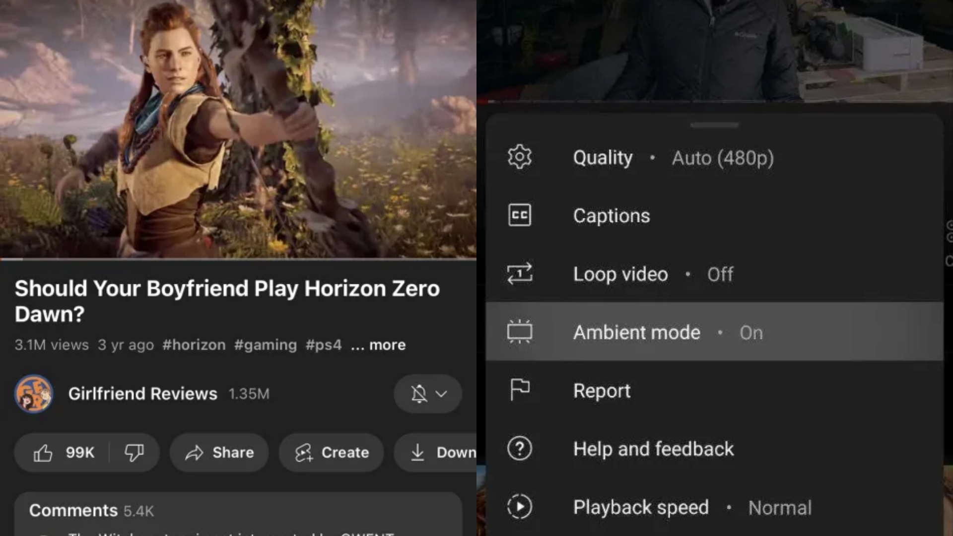Bu yeni tasarım ayrıca daha iyi bir YouTube deneyimi için "Ambiyans Modu"nu da yanında getiriyor. Bu mod sayesinde video ile daha uyumlu bir temaya sahip olacaksınız. Videonun ayarlar menüsü altından da bu özelliği istediğiniz zaman kapatıp açabileceksiniz.
