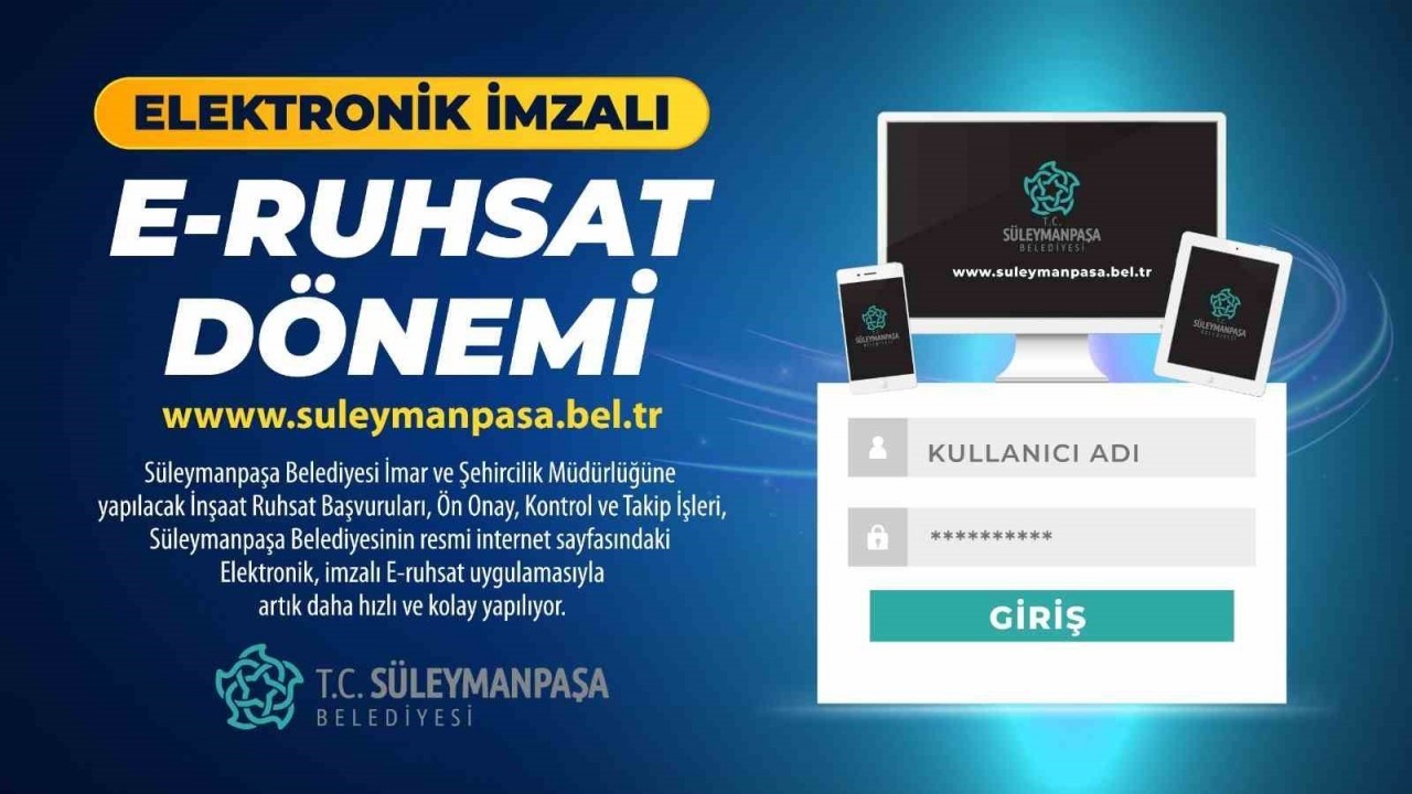 Süleymanpaşa Belediyesi’nde E-Ruhsat dönemi başlıyor