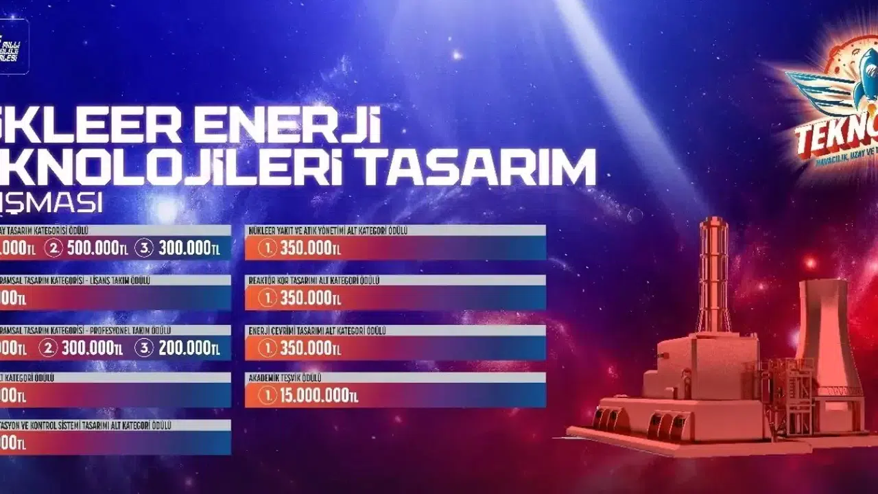 Bu yıl ikinci kez düzenlenen Nükleer Enerji Teknolojileri Tasarım Yarışması, 2-4 Eylül tarihleri arasında İstanbul Küçükçekmece Nükleer Araştırma ve Eğitim Merkezi'nde gerçekleştiriliyor. Enerji ve Tabii Kaynaklar Bakanlığı ile Türkiye Enerji, Nükleer ve Maden Araştırma Kurumu (TENMAK) iş birliğiyle hayata geçirilen bu yarışma, nükleer enerjinin gelecekteki potansiyelini gözler önüne seriyor. Yarışmada toplam ödül miktarı ise 19 milyon TL’nin üzerinde belirlenmiş durumda.