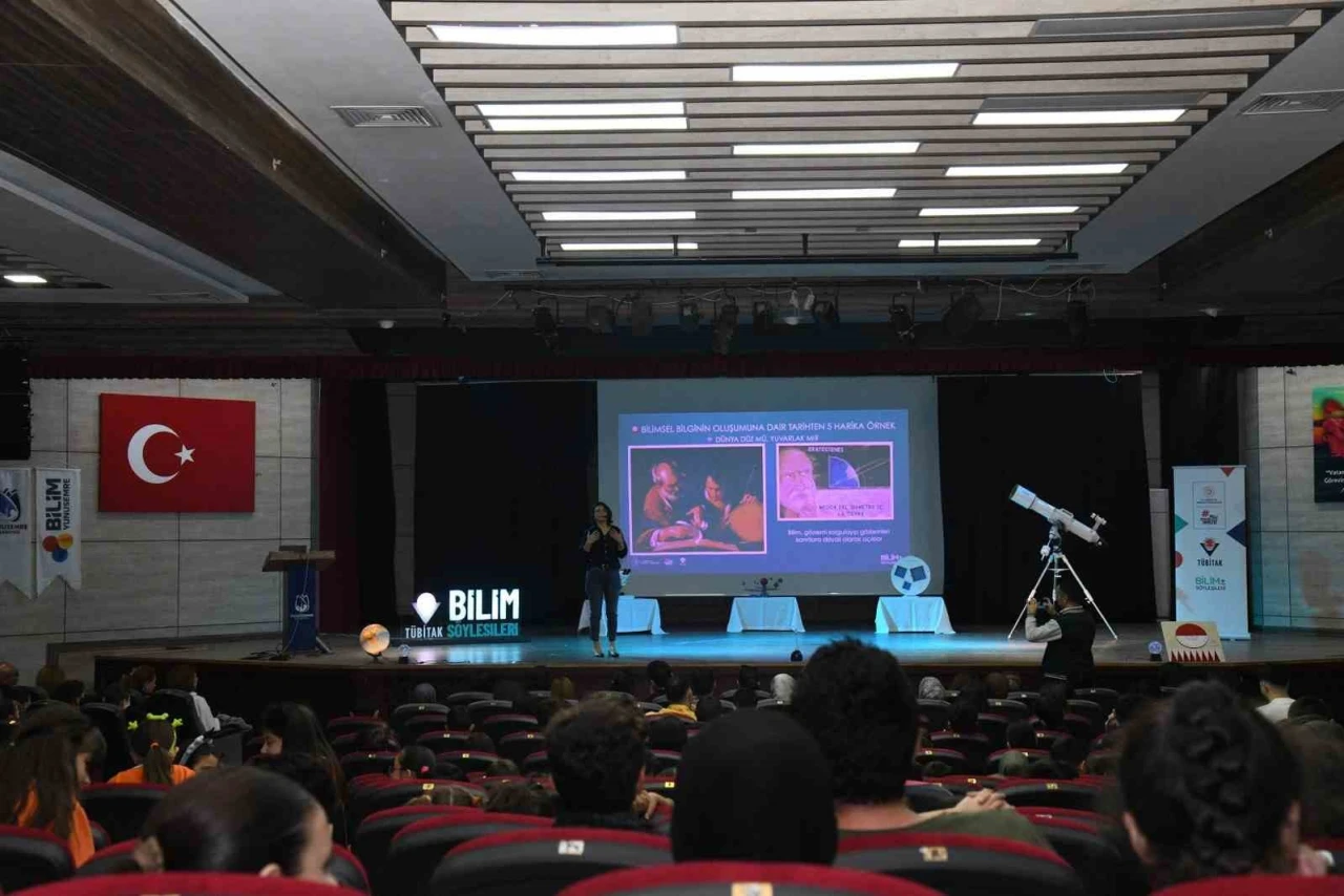 Doç. Dr. Yılmaz, söyleşi boyunca bilimsel bilginin nasıl üretildiğini, hangi süreçlerden geçtiğini ve neden güvenilir olduğunu örneklerle anlattı. Bilimin doğrulanabilirlik, şüphecilik ve deneysel temellere dayandığını vurgulayan Yılmaz, öğrencilerle interaktif bir diyalog kurarak merak edilen soruları da yanıtladı.