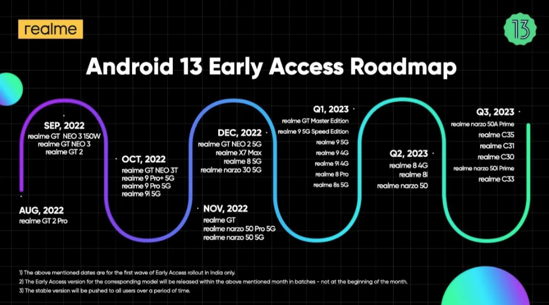 Realme’nin yayınladığı yol haritasına göre 2022 yılı içerisinde 15, 2023 yılında ise 16 farklı model Android 13 güncellemesi alacak.