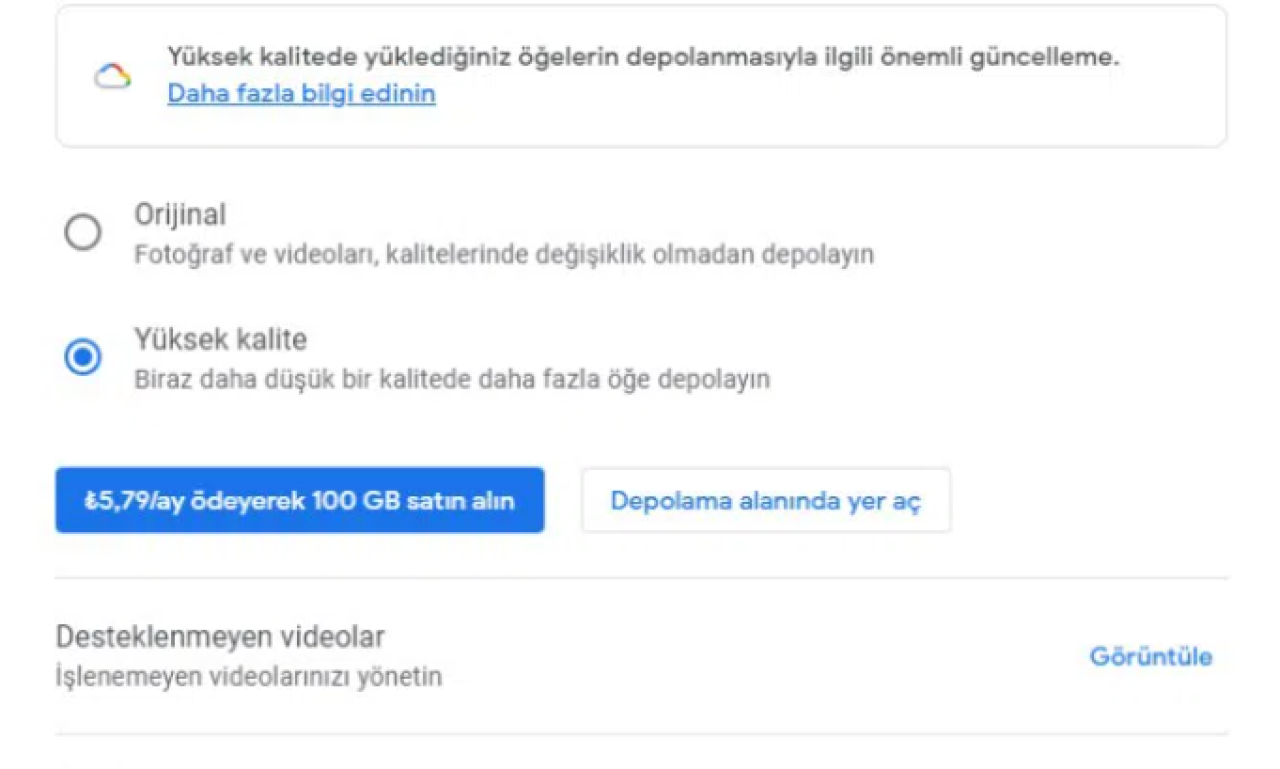 Temmuz 2019'da Google, fotoğraf dosyalarının Drive ve Fotoğraf hizmetleri arasında paylaşılma şeklini değiştirdi. Daha önce, iki bulut depolama çözümü fotoğrafları birlikte ele alıyordu. Drive'a yüklenen herhangi bir fotoğraf otomatik olarak Fotoğraflar'a eklenir.Google Fotoğraflar'ın web sürümünde, sağ üst köşedeki “Yükle” düğmesine gidin, “Google Drive'dan Yükle'yi” seçin, ardından “Drive'ınızdan” aktarmak istediğiniz resimleri seçin. Fotoğraflar kitaplığınız, 'Orijinal' veya 'Yüksek kaliteli' dosyalar olarak aktarma seçeneğiniz olacak ve anında kitaplığınızda görünecek.