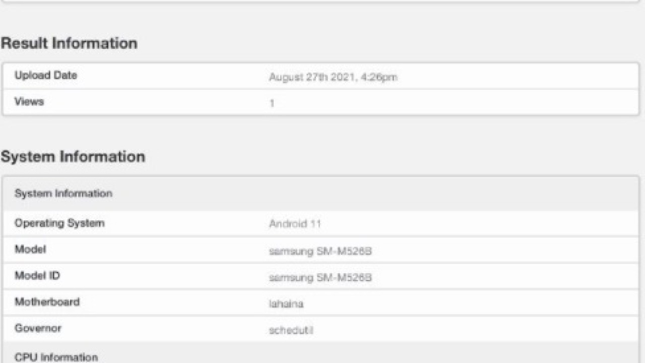 Sızdırılan Geekbench skoru, 8 GB versiyonuna ait.Samsung Galaxy M52 teknik özellikleri