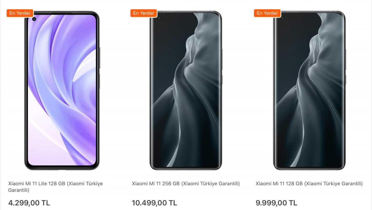 9.999 TL'den ve Xiaomi Mi 11 256 GB modeli ise
