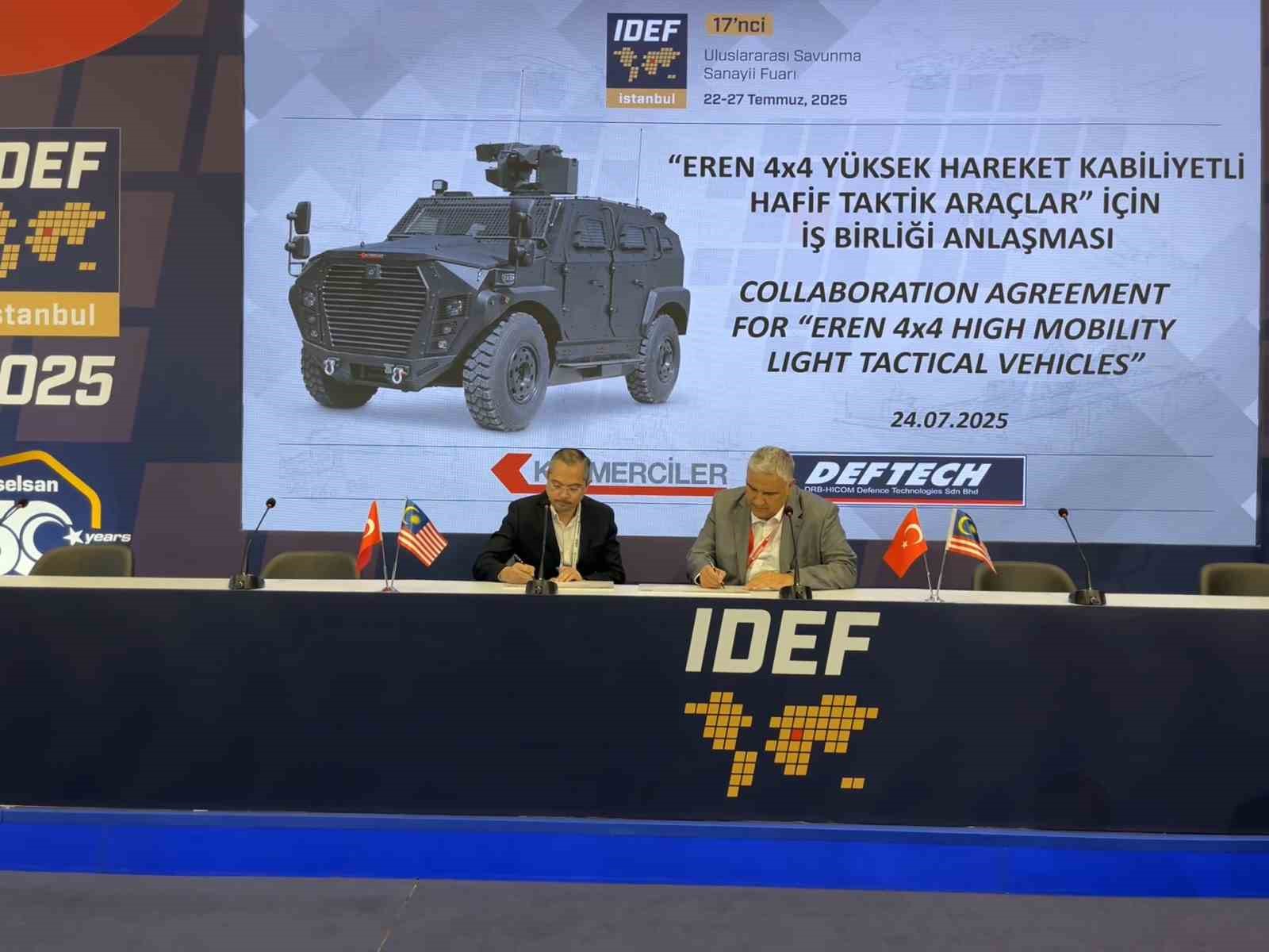 Türkiye'nin güçlü kara aracı üreticilerinden KATMERCİLER ile Malezya'nın önde gelen savunma sanayi firması DEFTECH arasında önemli bir işbirliği anlaşması imzalandı. Bu anlaşma, EREN 4x4 Yüksek Hareket Kabiliyet Hafif Taktik Araçlar’ın Malezya'da üretilmesini içeriyor ve böylece bölge ülkelerine ihracat potansiyelinin artırılmasına yönelik bir adım atılmış oldu.