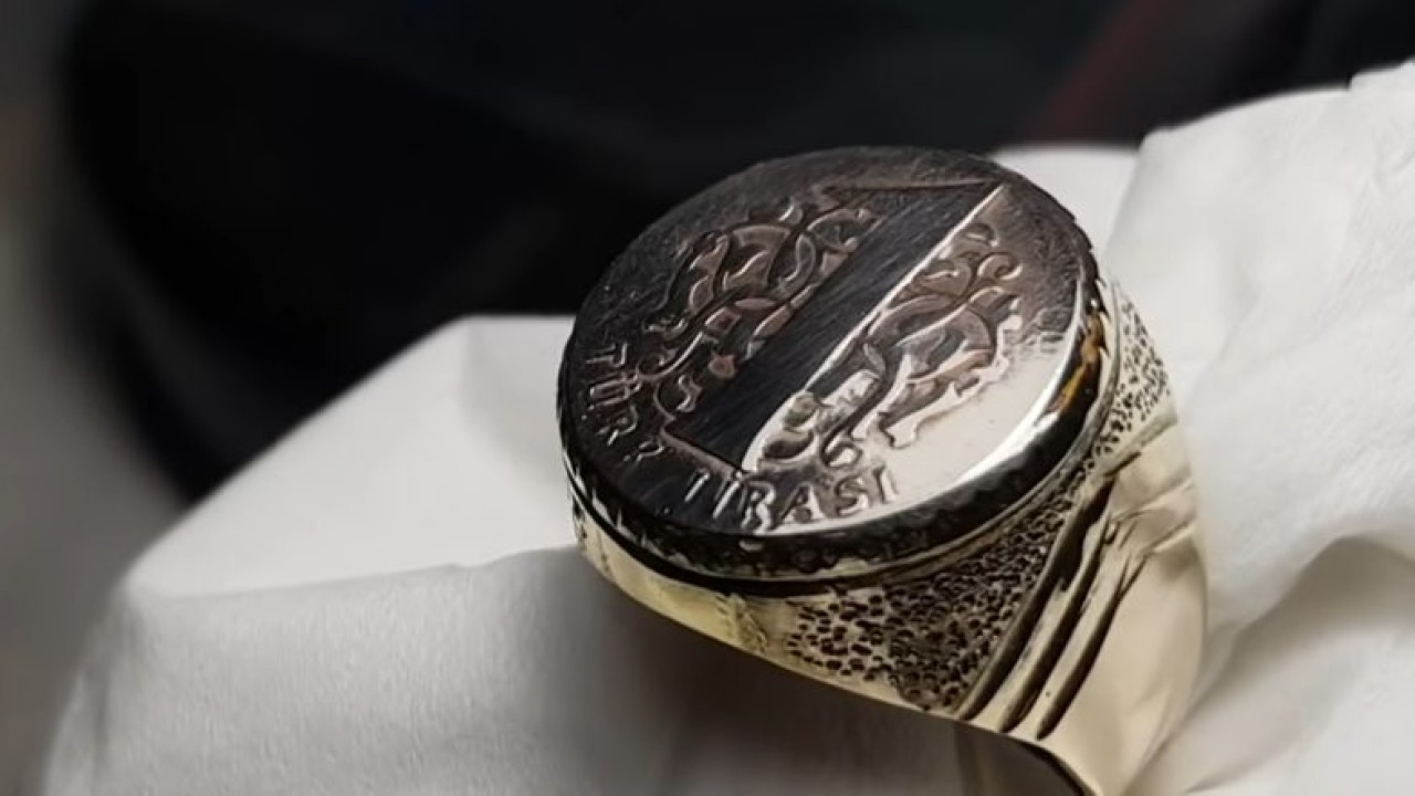 Farklı eşyaları ve maddeleri kullanarak birbirinden güzel yüzükler üreten Endonezyalı bir YouTuber, bu kez 1 TL'lik madeni parayı kullandı.