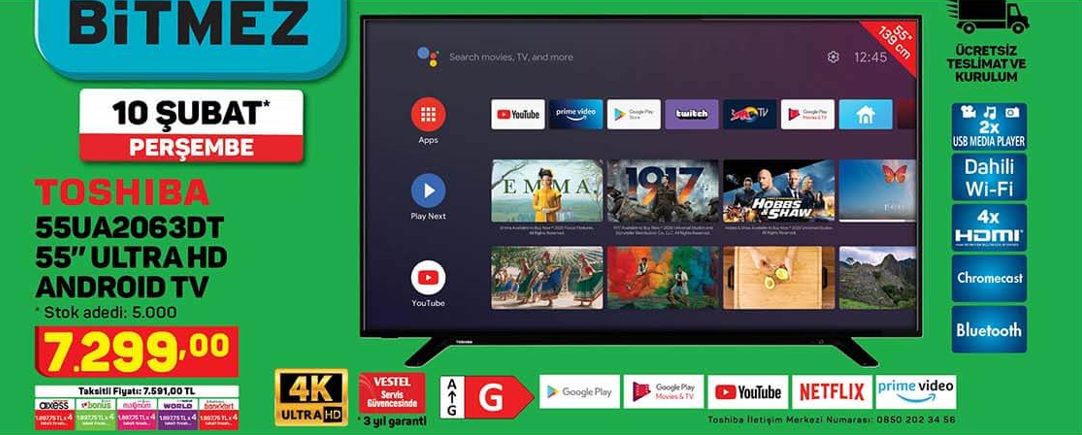 Toshiba 55UA2063DT 55 inç ULTRA HD Android TV