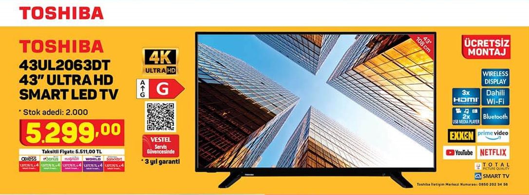Toshiba 43UL2063DT 43 inç ULTRA HD Smart LED TV