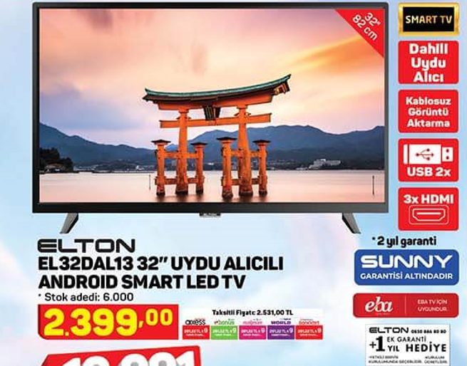 Elton EL32DAL13 32 inç uydu alıcılı Android Smart LED TV
