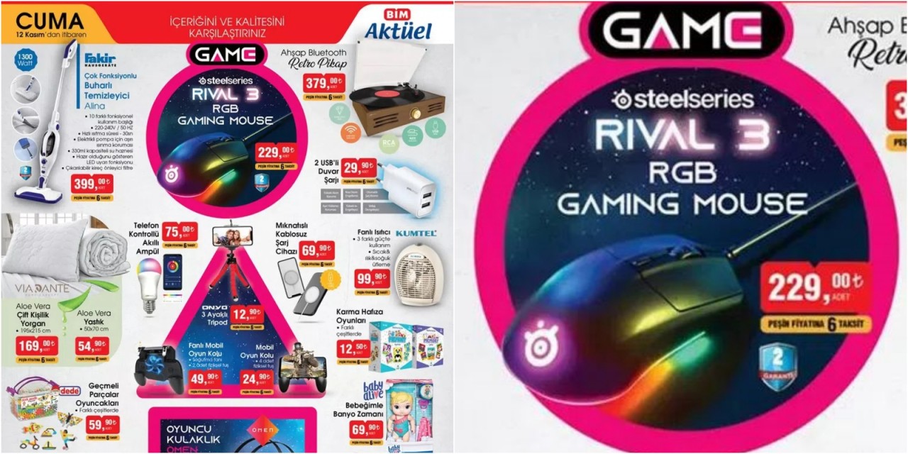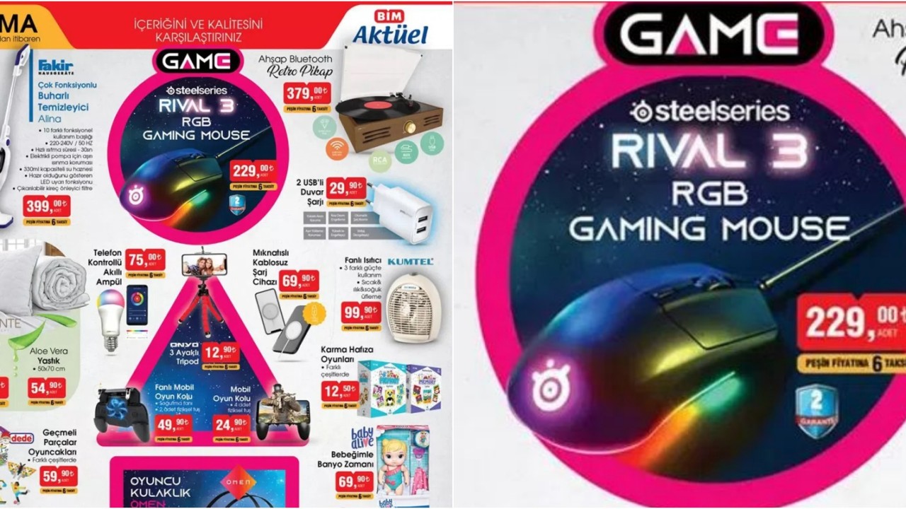 12 Kasım Cuma BİM Aktüel Teknoloji ürünleri! Steelseries Rival 3 oyuncu faresi ve daha fazlası...