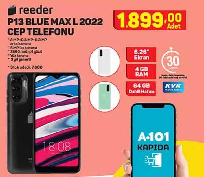 A101 zincir marketlere her hafta yeni teknolojik ürünler gelmeye devam ediyor. 13 Ocak Perşembe günü A101 aktüel teknoloji ürünleri arasında reeder P13 Blue Max L 2022 akıllı telefon, Piranha akıllı saat, Piranha Wi-fi akıllı LED ampul, Samsung Cyclone süpürge ve kiwi KCM 7515 kahve makinesi gibi ürünler var.