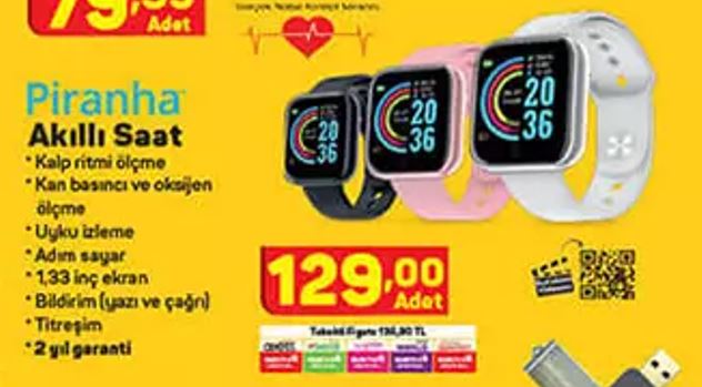 Fiyatı: 129 TLÖzellikleri- Kalp ritmi ölçme- Kan basıncı ve oksijen ölçme- Uyku izleme- Adım sayat- 1.33 inç ekran- Bildirim gösterimi- Titreşim