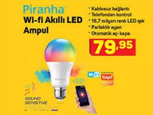 Fiyatı: 79, 85 TLÖzellikleri- Kablosuz bağlantı- Telefondan kontrol- 16.7 milyon renk LED ışık- Parlaklık ayarı- Otomatik aç-kapa- Sese duyarlı