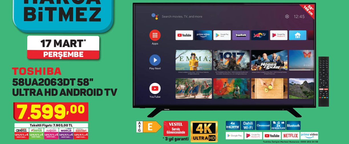 Toshiba 58UA2063DT 58 inç Ultra HD Android TV