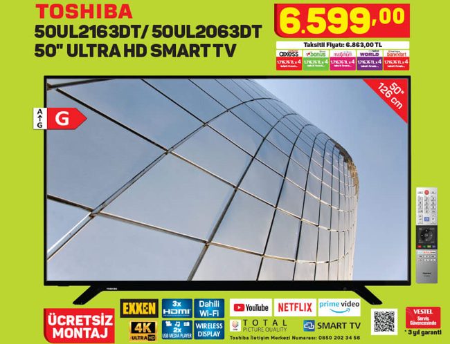 Toshiba 50UL2163DT/50UL2063DT Ultra HD 50 inç SMART TV
