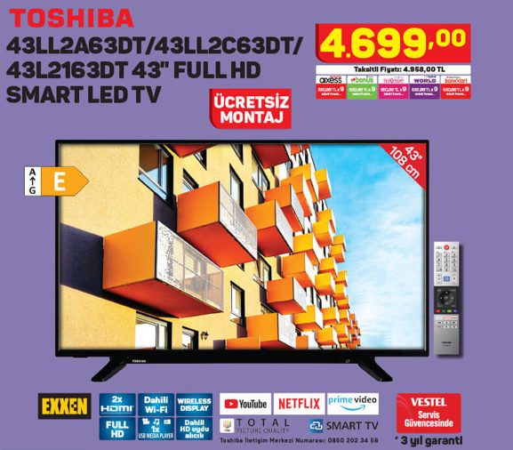 TOSHIBA 43LL2A63DT / 43LL2C63DT / 43L2163DT – 43 inç FULL HD SMART LED TV