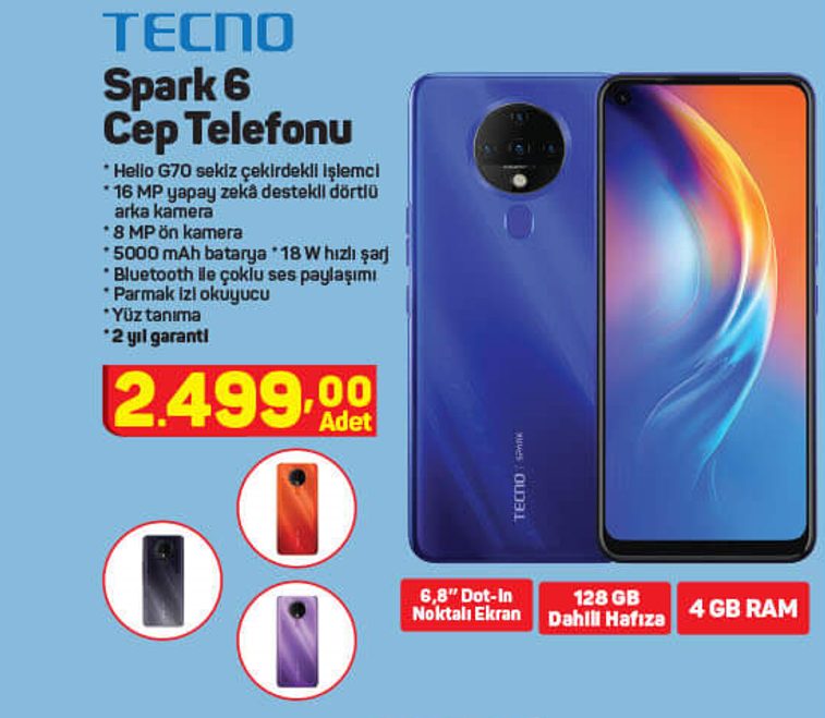 Fiyatı: 1.999 TLÖzellikleri: - 6.5 inç ekran
