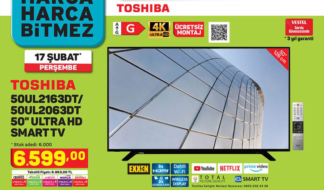 Toshiba 50UL2163DT/50UL2063DT Ultra HD 50 inç SMART TV