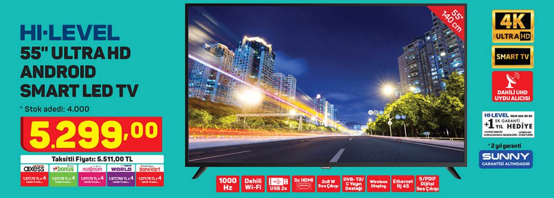 Fiyatı: 6.599 TLÖzellikleri - 4K ULTRA HD çözünürlük