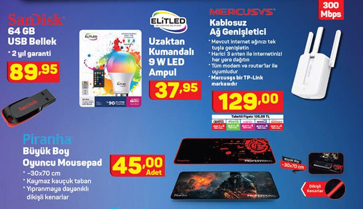 - Sandisk 64 GB USB Bellek: 89, 95 TL
