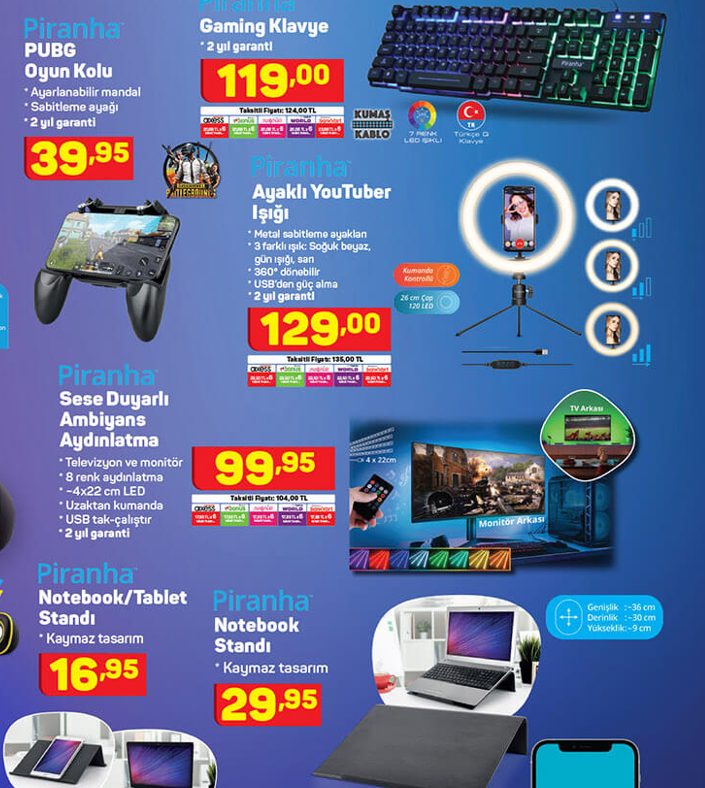 - Piranha notebook standı: 29, 95 TL