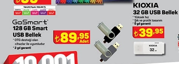 - GoSmart 128 GB Smart USB bellek (OTG desteği): 89, 95 TL