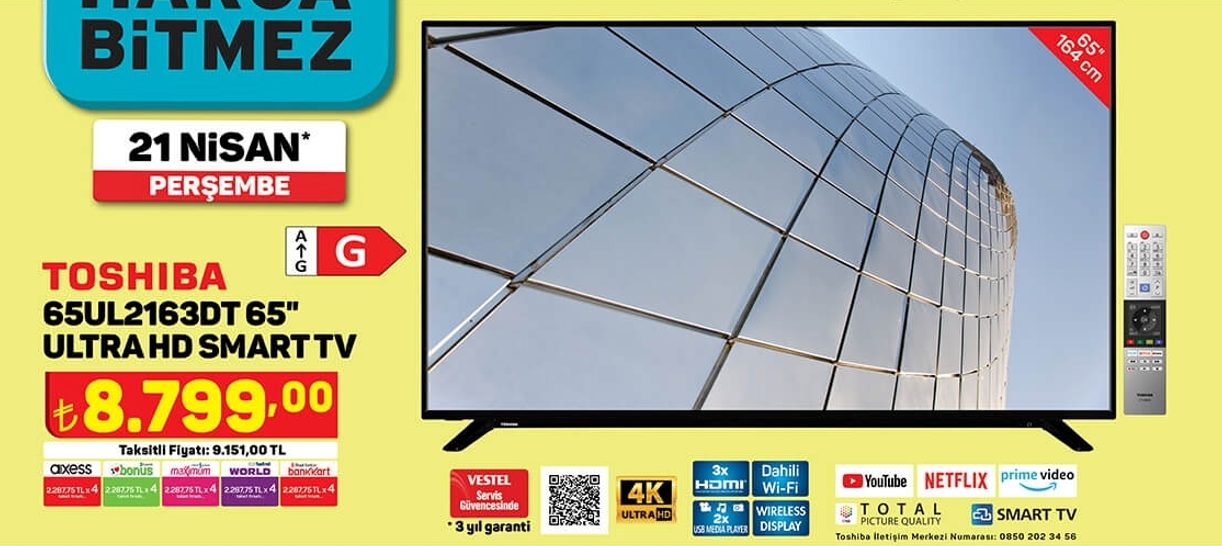 Fiyatı: 8.799 TLÖzellikleri - 65 inç Ultra HD Smart TV