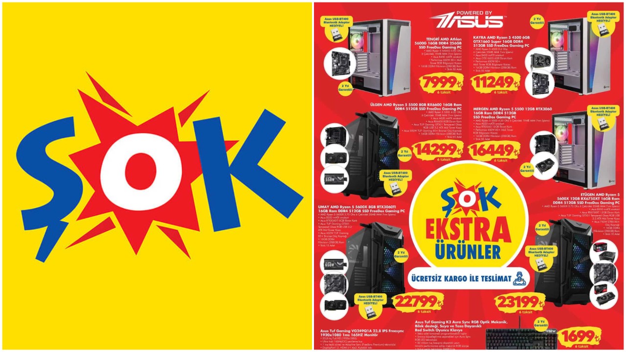 ŞOK zincir marketlerinde 21 Ocak’tan itibaren yeni teknoloji ürünleri geliyor. Bunlar arasında AMD Ryzen işlemcili oyuncu kasaları, Rapmapge oyuncu ekipmanları ve Asus TUF oyuncu monitörü ve ekipmanları yer alıyor.