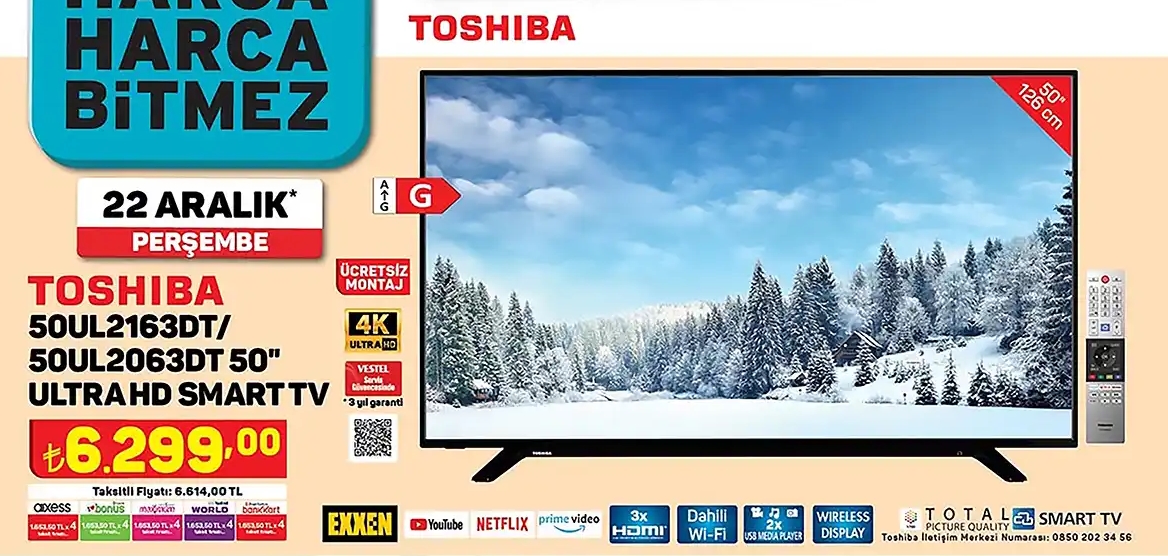 Toshiba 50UL2163DT/50UL2063DT 50" inç ULTRA HD SMART TV