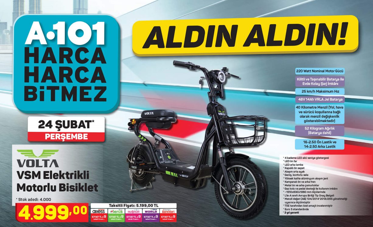 Fiyat: 4.999 TLVOLTA VSM Elektrikli motorlu bisiklet özellikleri: - 220 Watt Nominal motor gücü