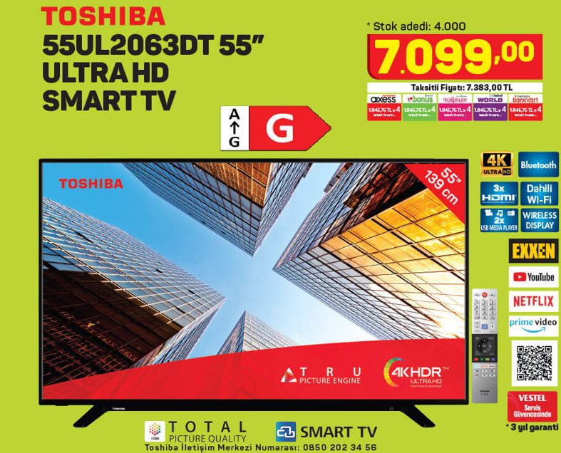 Toshiba marka akıllı televizyonların ve
