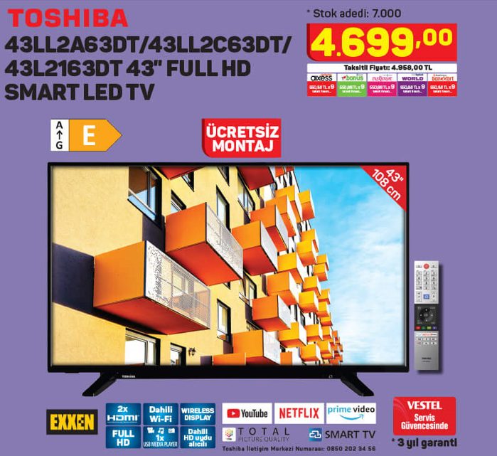 TOSHIBA 43LL2A63DT / 43LL2C63DT / 43L2163DT – 43 inç FULL HD SMART LED TV
