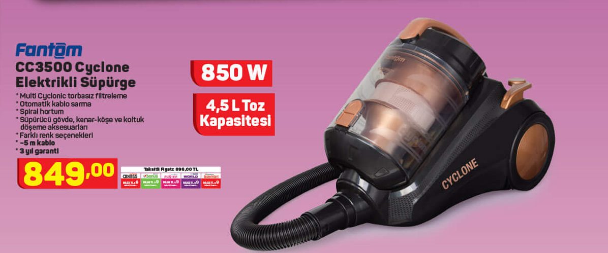 FANTOM CC3500 Cyclone Elektrikli Süpürge