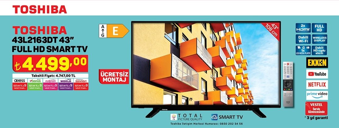 TOSHIBA 43L2163DT – 43 inç FULL HD SMART LED TV