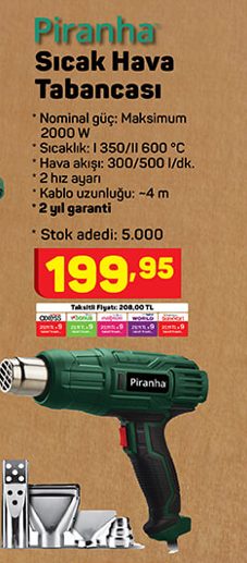 Fiyatı: 149, 95 TLPiranha Sıcak Hava Tabancası