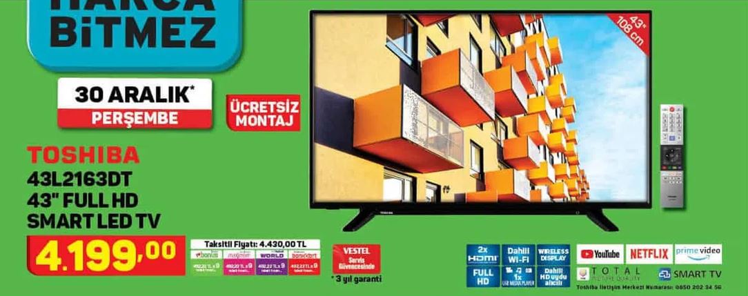 - YouTube, Netflix, Prime Video gibi SmartTV özellikleri