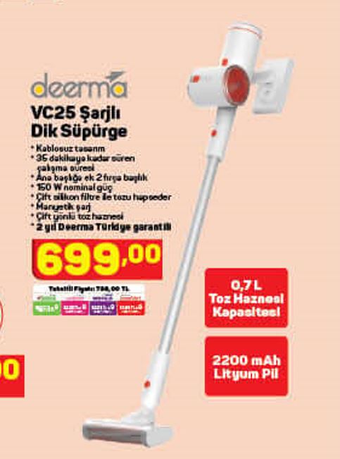Deerma VC25 Şarjlı Dik Süpürge özellikleri