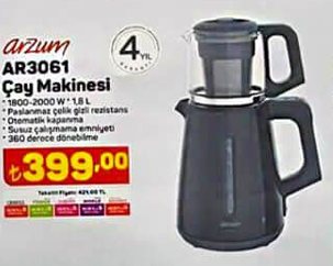 Fiyatı: 479 TLArzum Çay Makinesi
