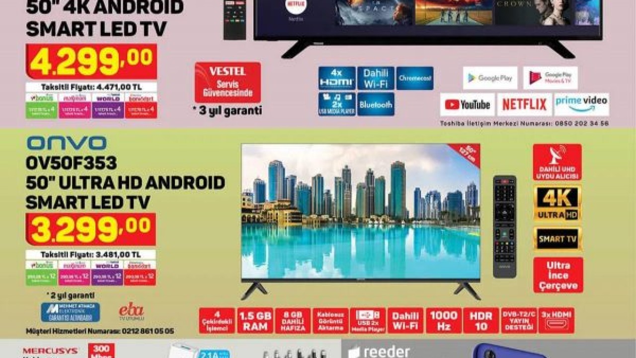 - TOSHIBA 50UA2063DT 4K ANDROID SMART LED TV 4.299, 00 TL