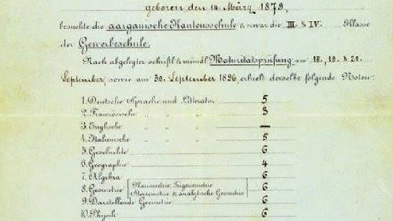 Nobel Ödülü Vakfı, Twitter hesabı üzerinden Albert Einstein'ın 125 yıl önce bugün aldığı lise karnesini paylaştı.Dünya çapında birçok alanda, insanlığa hizmet ede...