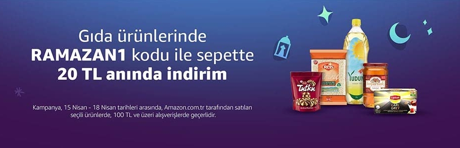 Amazon Türkiye başlattığı kampanya ile Ramazan ayına özel, gıda ürünlerinde 20 TL anında indirim fırsatı sunuyor.Amazon.com.tr'de geçtiğimiz ay başlayan gıda ve süpermarket ürünü satışı ilgi görmüştü. Şirket, Ramazan ayına özel indirim kodu kampanyası ile tüketicilere güzel bir fırsat sunuyor.