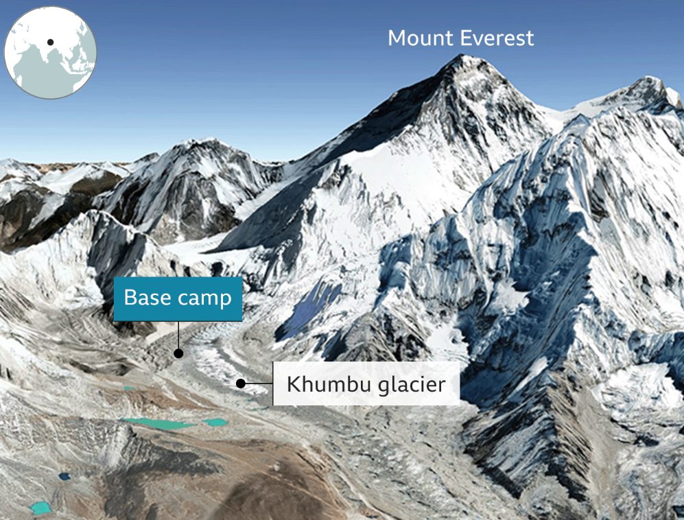 Everest Dağı tırmanma döneminde 1.500'e kadar kişinin kullandığı kamp, küresel ısınma nedeniyle hızla incelen Khumbu buzulunun üzerinde yer alıyor.Eriyen suyun buzulun dengesini bozduğunu belirten araştırmacılar ve dağcılar, ana kampta çatlakların giderek daha fazla ortaya çıktığını belirtti. Bununla birlikte dağcılar ve Nepalli yetkililer, ana kampın tam ortasında bulunan derenin yıldan yıla yükseldiğini söyledi.