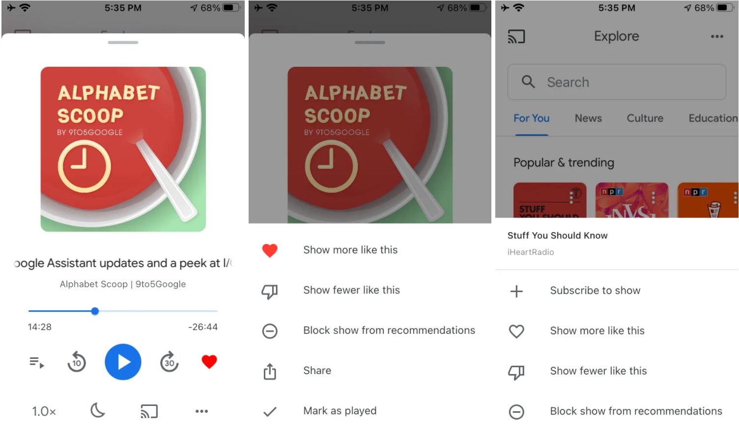 kalp” Google’a “önerilerinizde buna benzer daha fazla bölüm” göstermesi konusunda fikir verme görevi görecek. Buna ek olarak, menüden Podcast’lere “